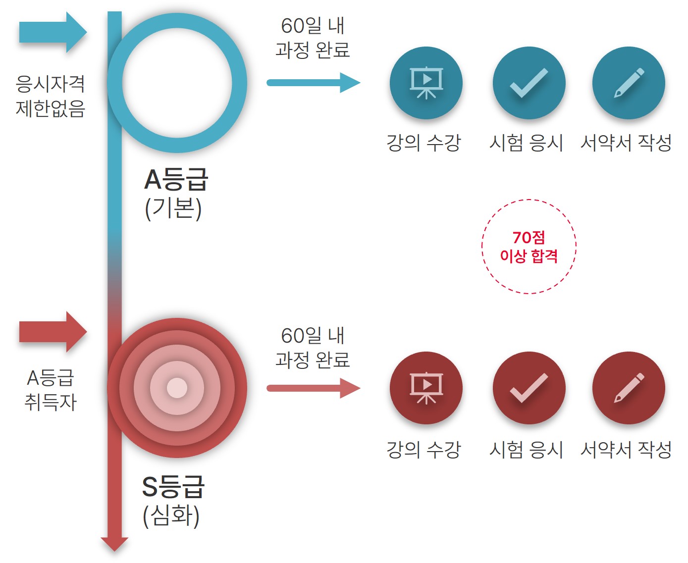 S등급 심화 과정 자격 접수는 A등급 기본 과정 합격자에 한해 가능합니다.